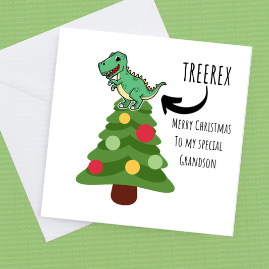 TreeRex Christmas Card for the dinosaur fan, personalised