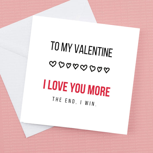 I love you more -the end, I win. Valentines Card Can Be Customised.