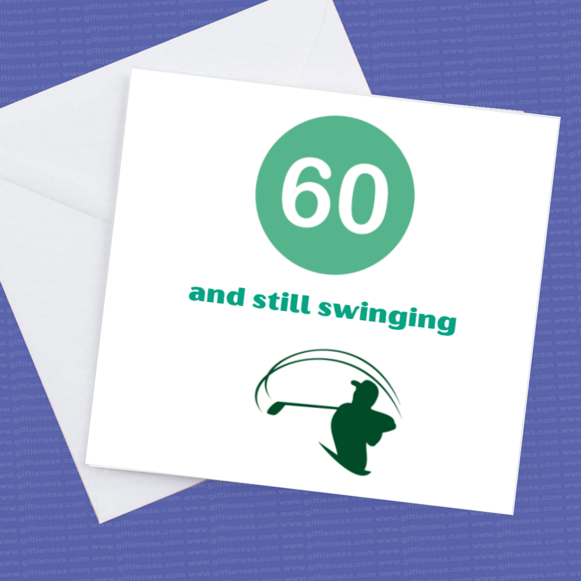 Celebrate the golden years with our 60th Birthday Card - 60 and still swinging! This golf-themed card is perfect for any golf enthusiast reaching their milestone birthday. With a fun and playful message, it's sure to bring a smile to their face and remind them that age is just a number.
