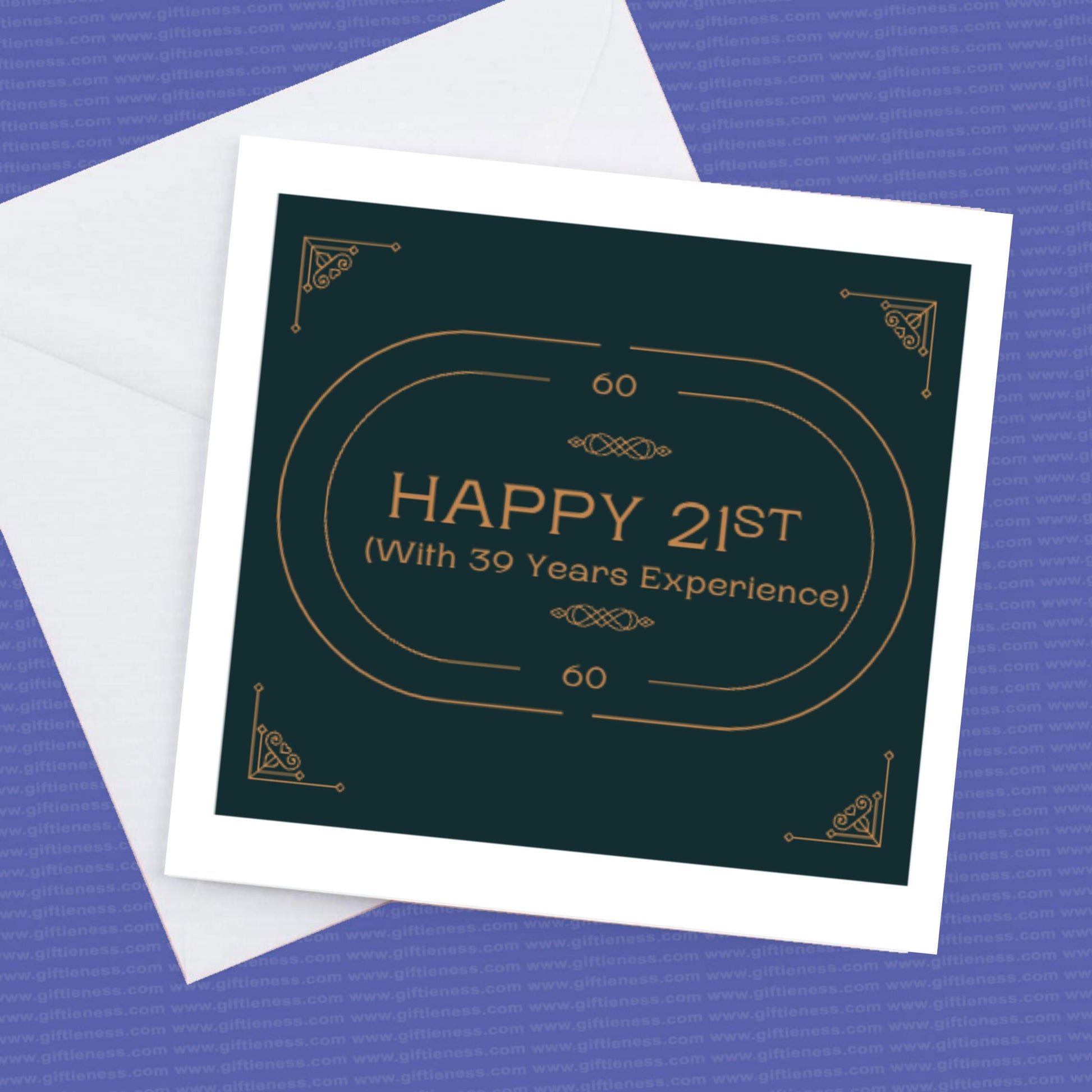 Celebrate someone's sixtieth birthday with this humorous card that wishes them a "Happy 21st" with "39 years of experience." Show them that age is just a number and that they have accumulated knowledge and wisdom over the years. The perfect way to make someone feel special on their milestone birthday.