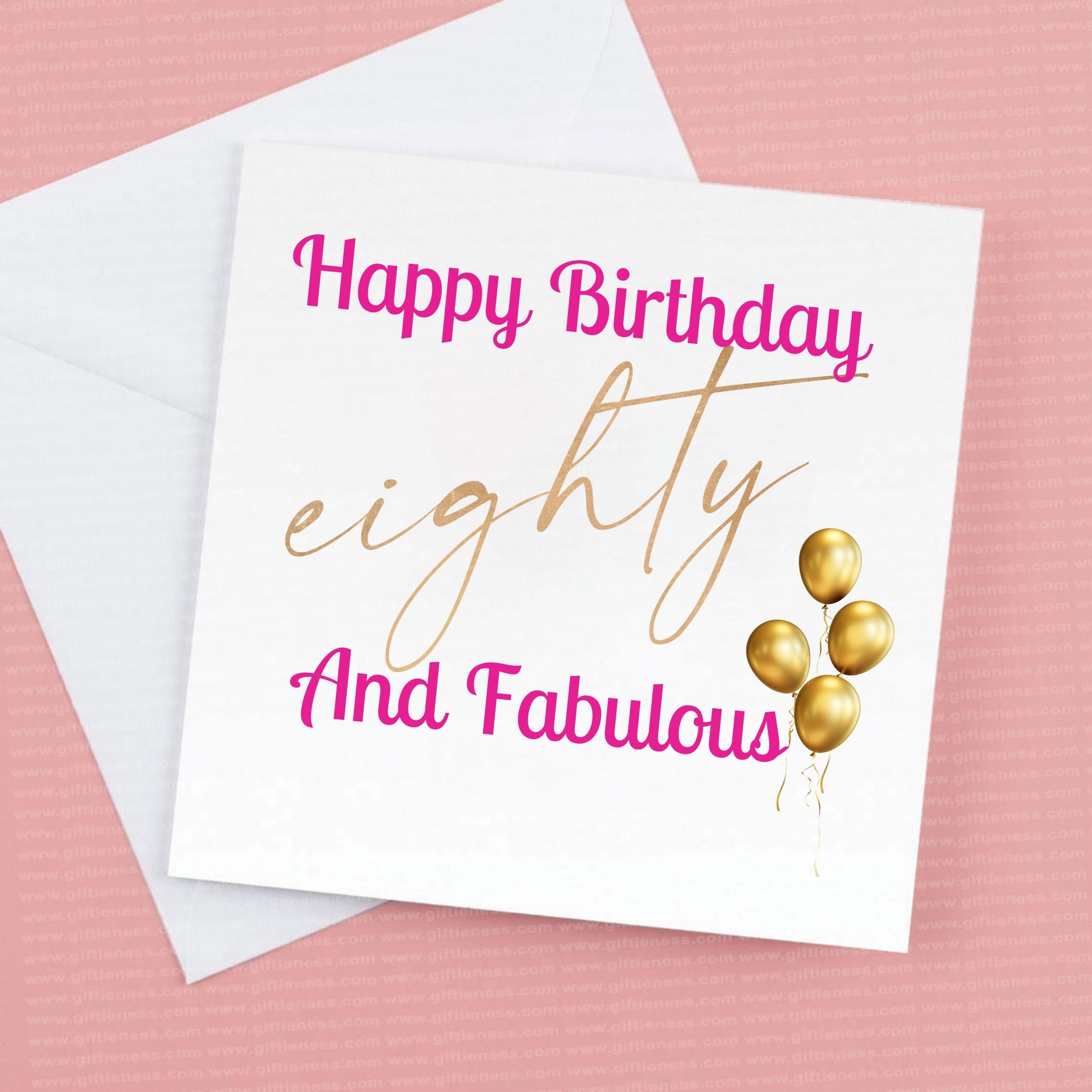 Celebrate a milestone with our 80th Birthday card, featuring the phrase "80 and Fabulous." This card is perfect for the fun and fashionable individual who has reached this impressive age. Wish them a happy birthday with our stylish and high-quality card.