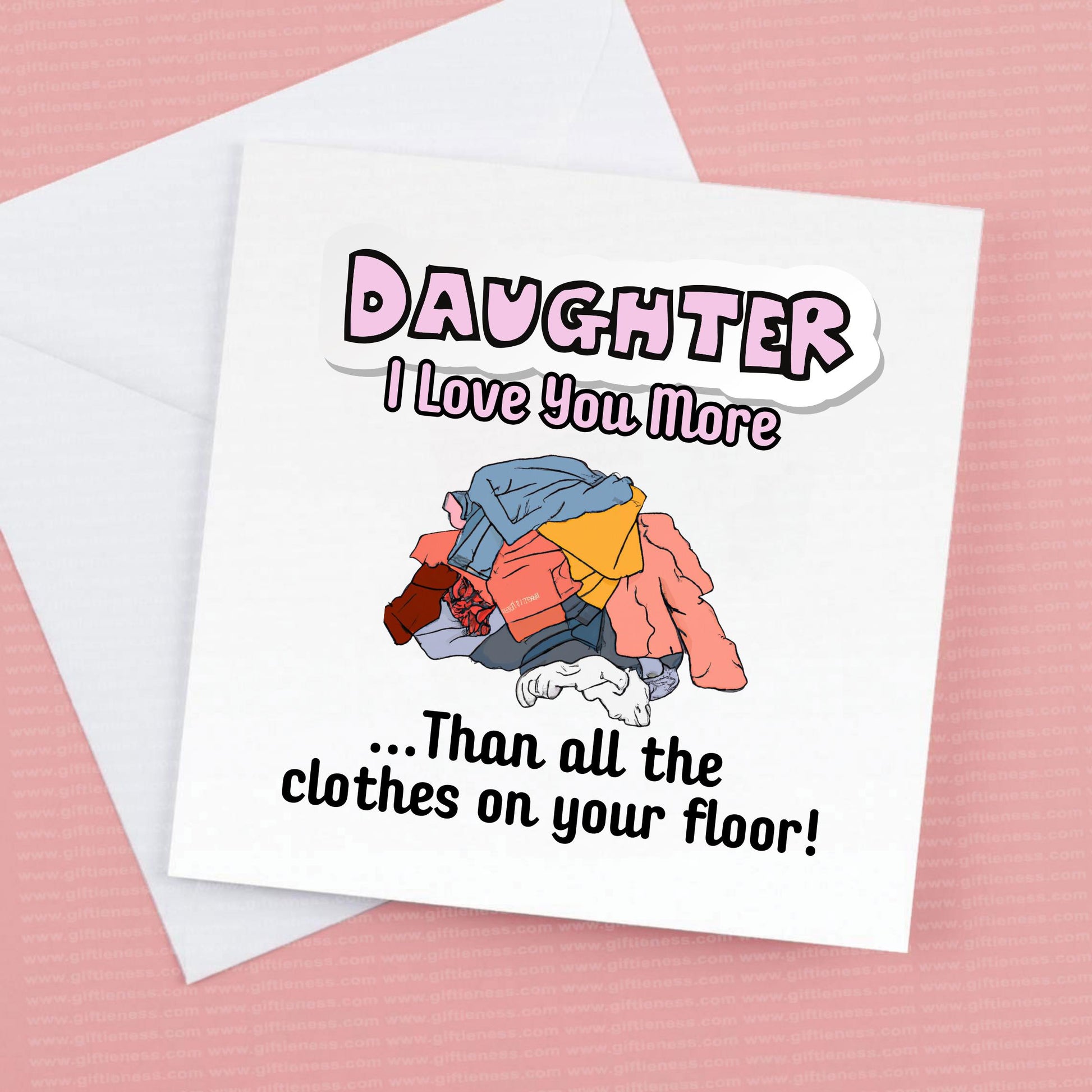 Daughter I love you more than all the clothes on your floor! card and matching envelope