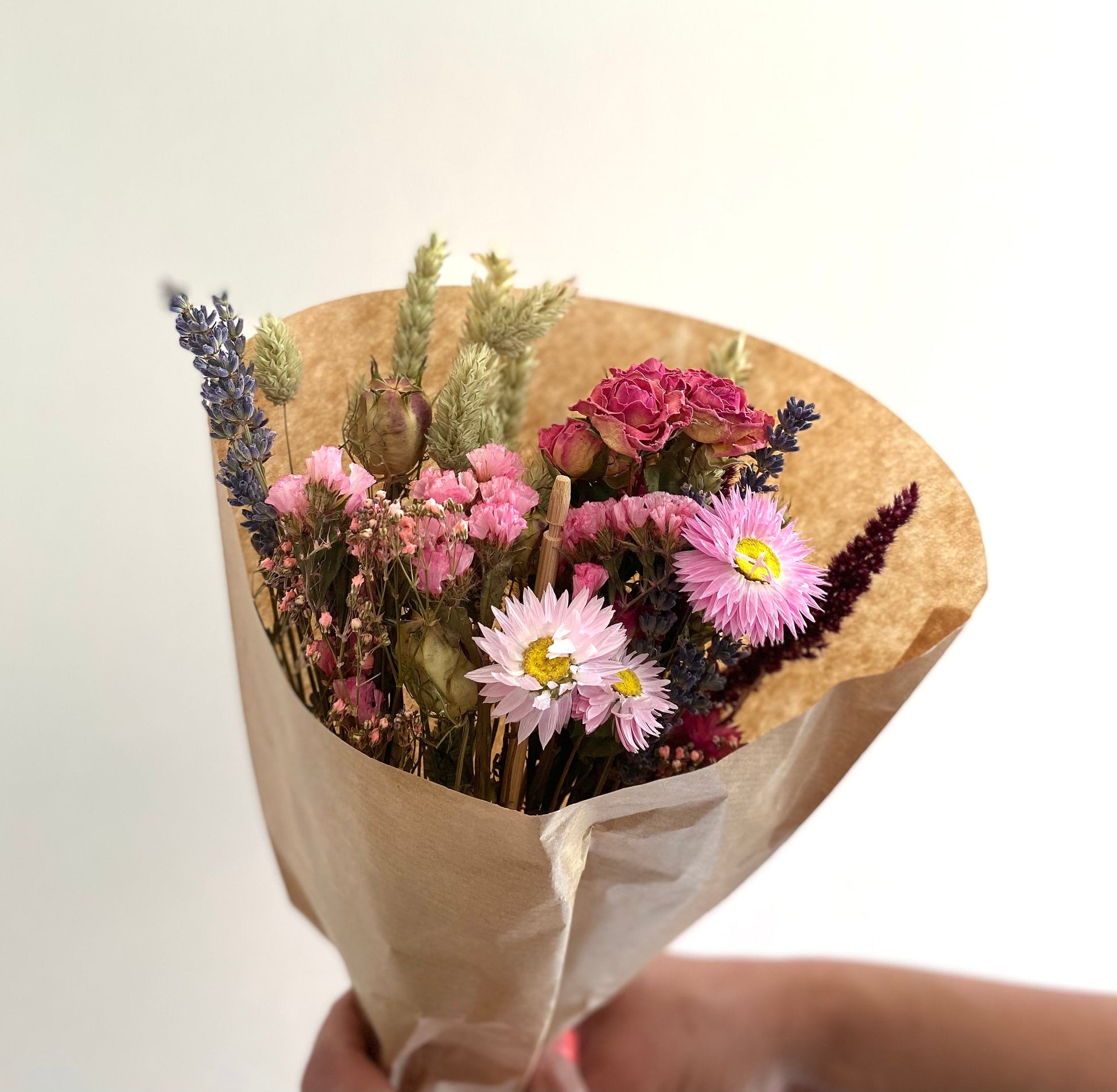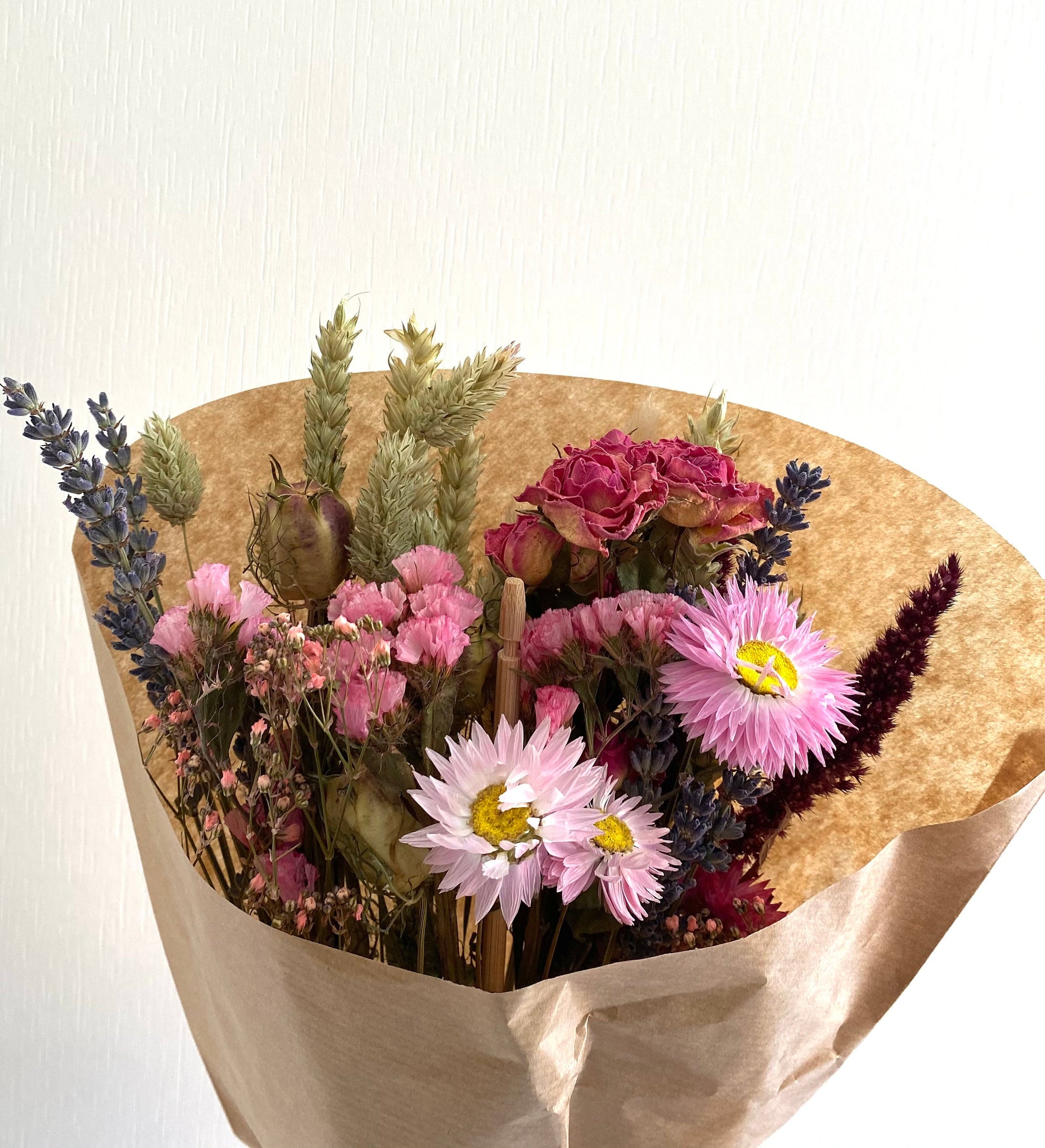Dried Wildflower Field Bouquet Beautiful Natural Pink colours gift packaged with a free card of choice
