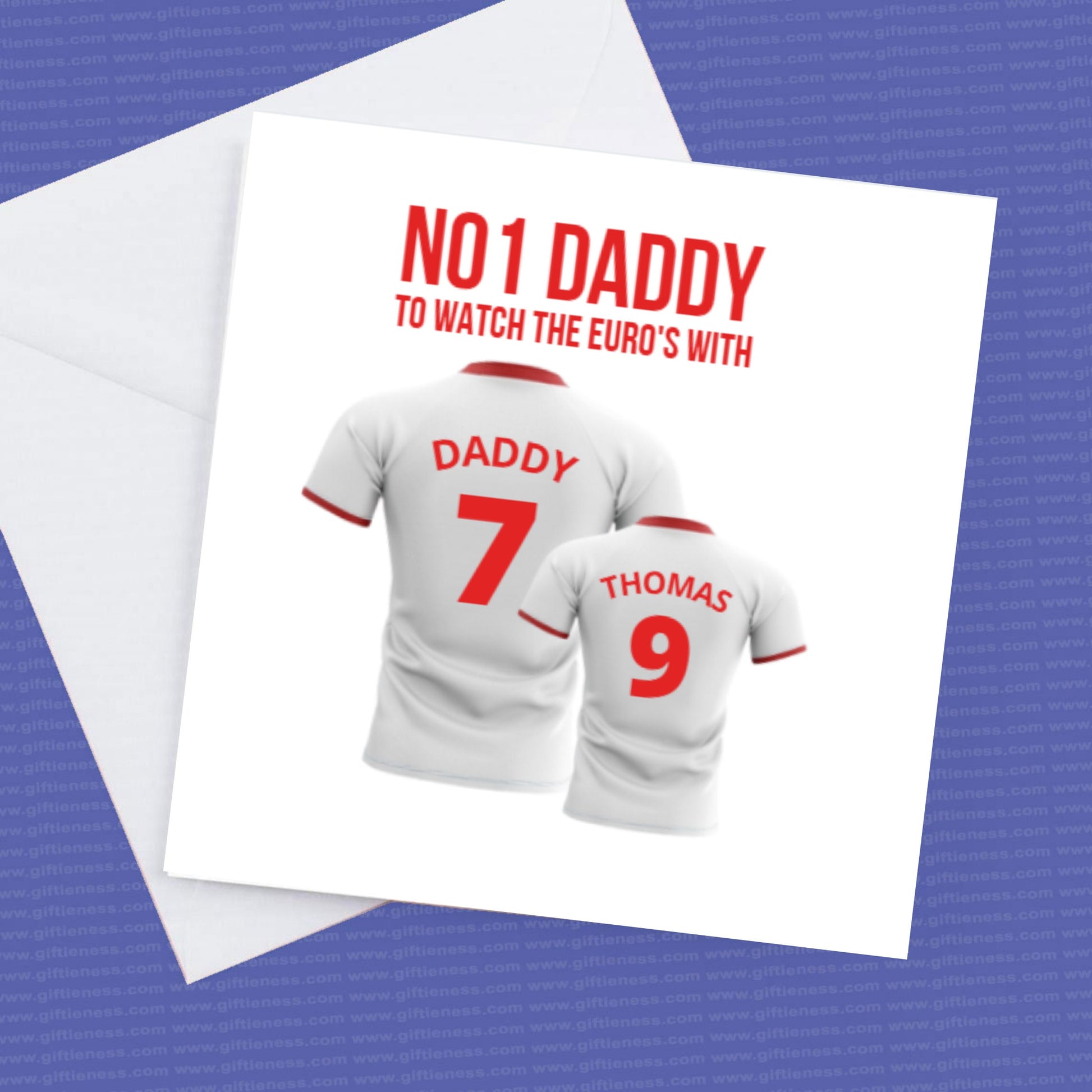 Fathers Day Card, No1 Dad to watch the Euros with personalised shirts, any team colours can be made