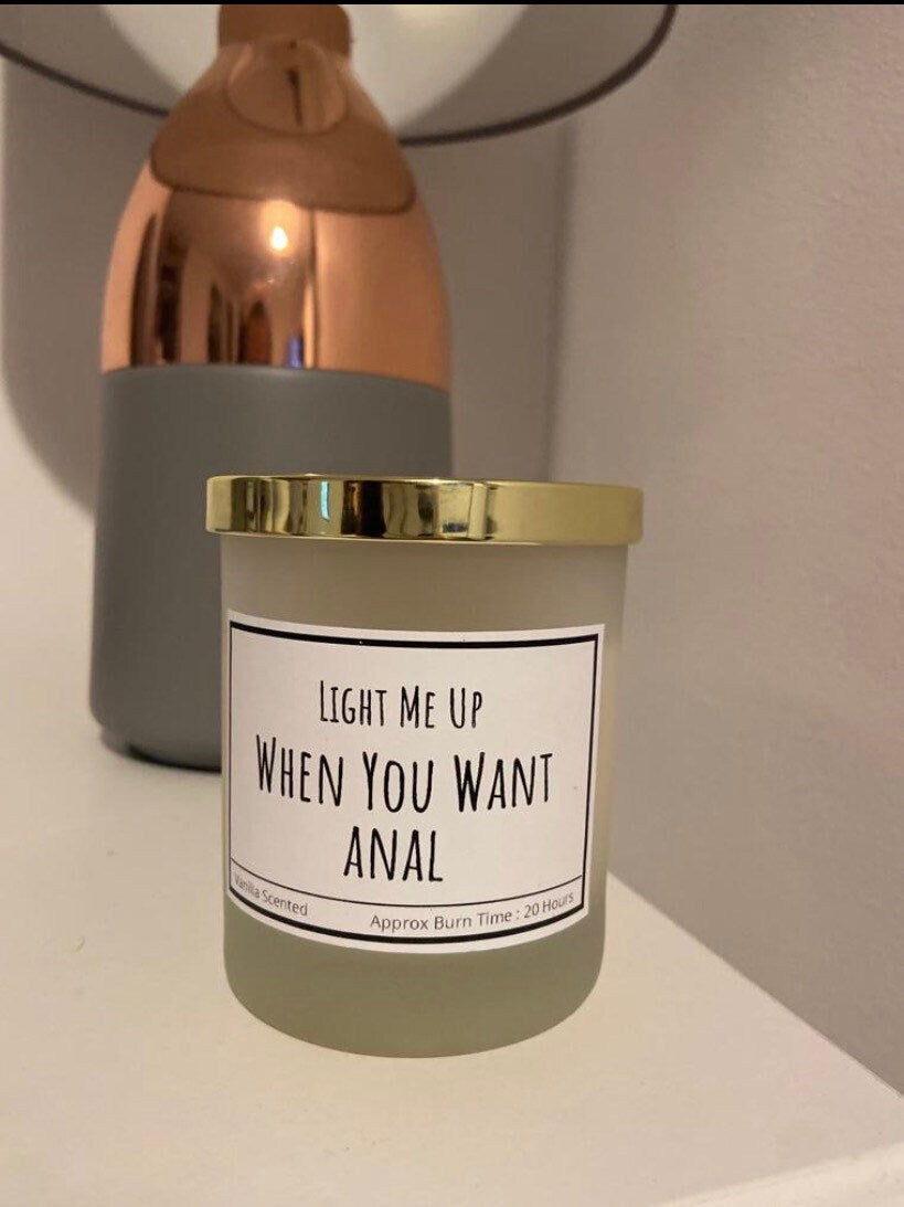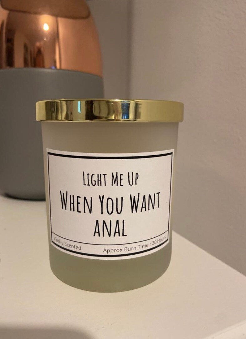 Turn up the heat in the bedroom with our Light Me Up When You Want Anal Handmade Candle! Made with love and care, this candle can be made with or without a wick to set the mood or just to tease. Perfect for some playful fun with your partner, this candle will definitely light a spark in your relationship.