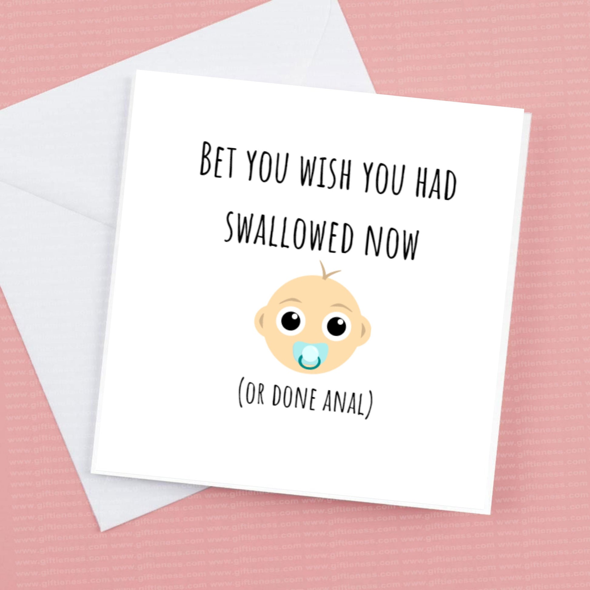 New Baby Card - Funny -Bet you wish you had swallowed now!