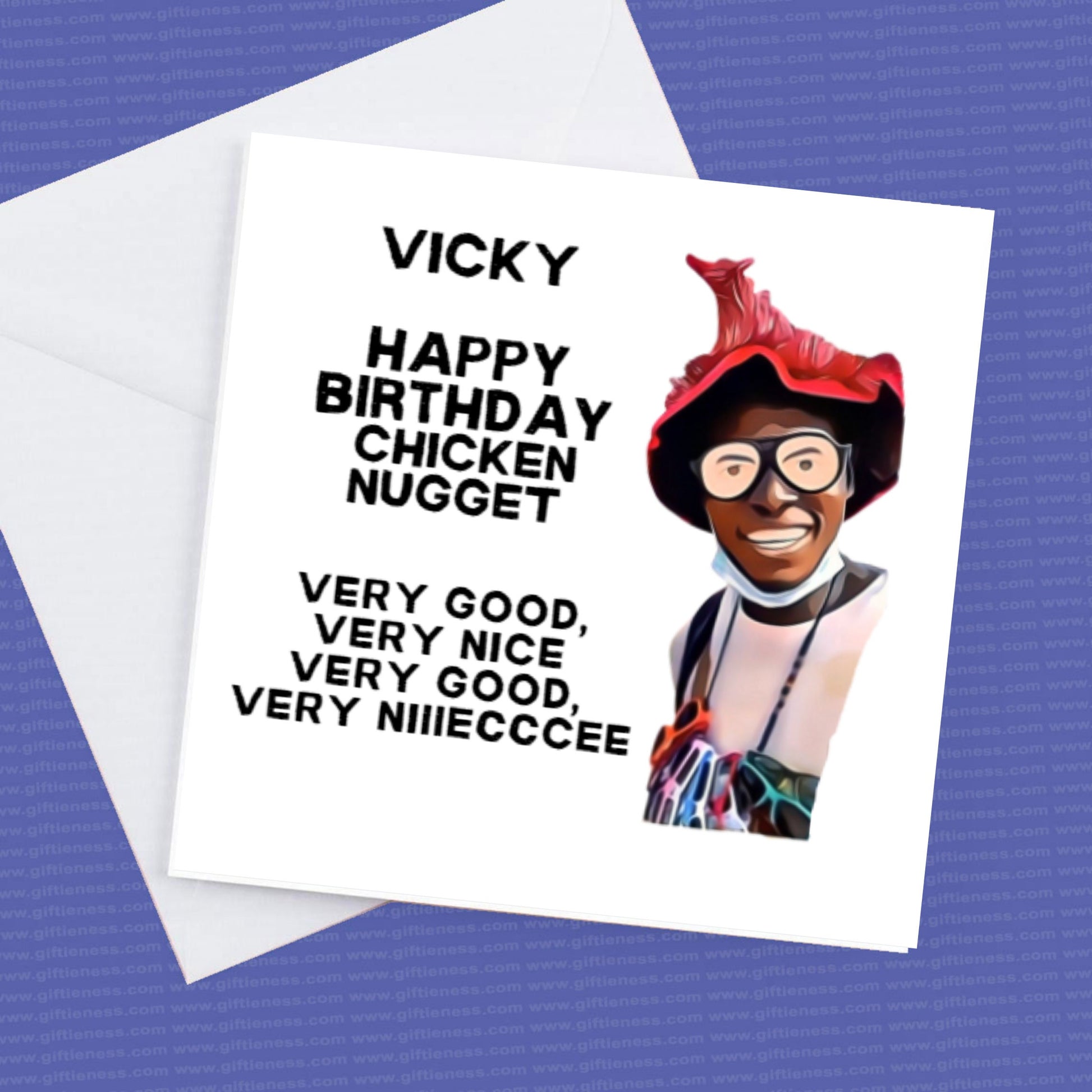 Personalised Card in TikTok Famous Chicken Nugget Man design.
