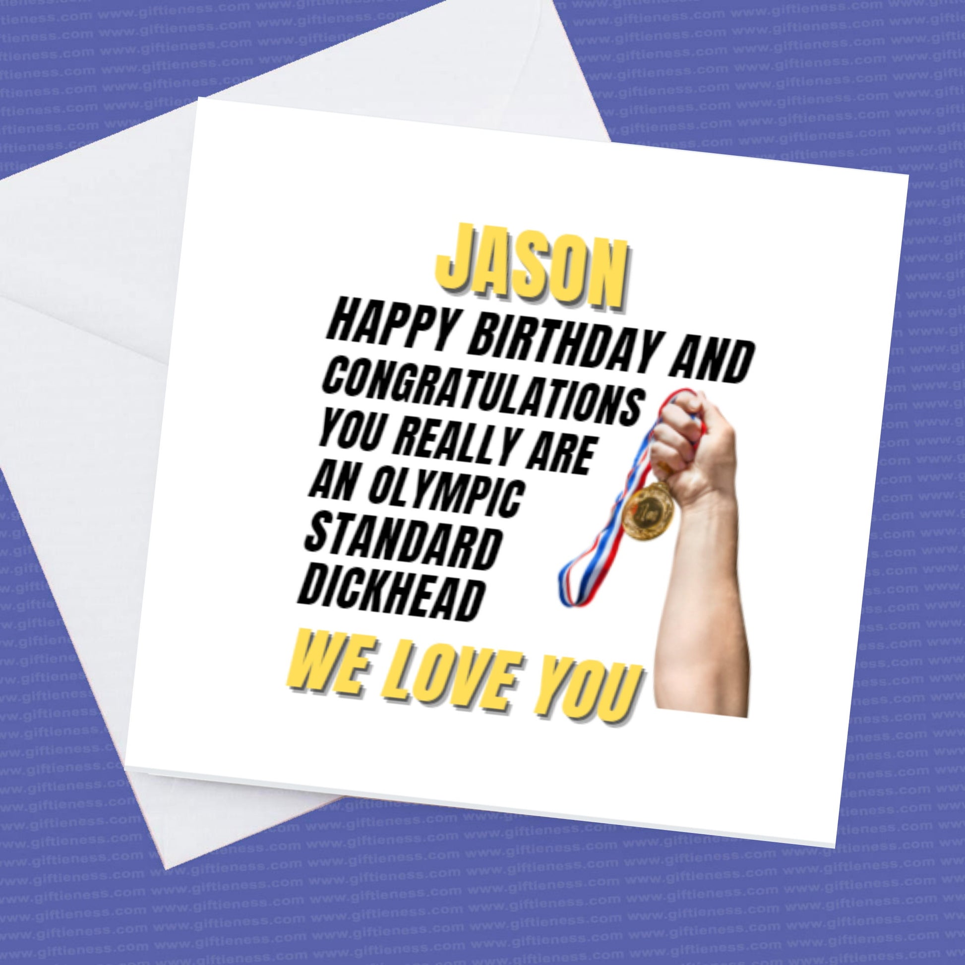 Personalised Olympic Dickhead Birthday Card, Olympic Standard Dickhead Card