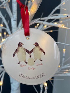 Personalised Penguin Christmas decoration, Mummy, Daddy and Baby penguin christmas 2022