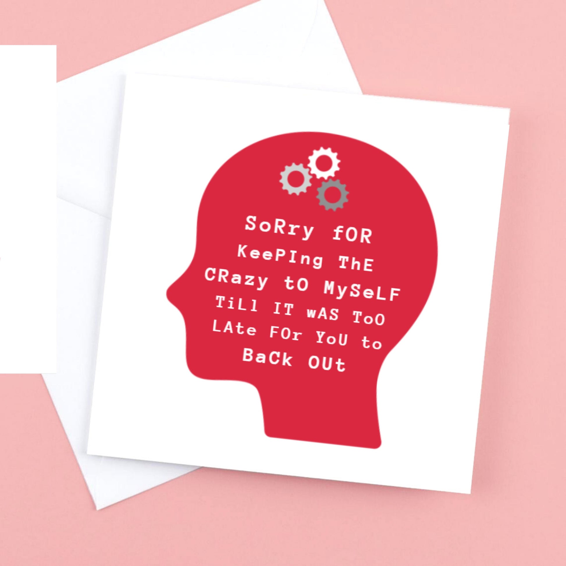 quirky card " Sorry for keeping the crazy to myself till it was too late for you to back out.