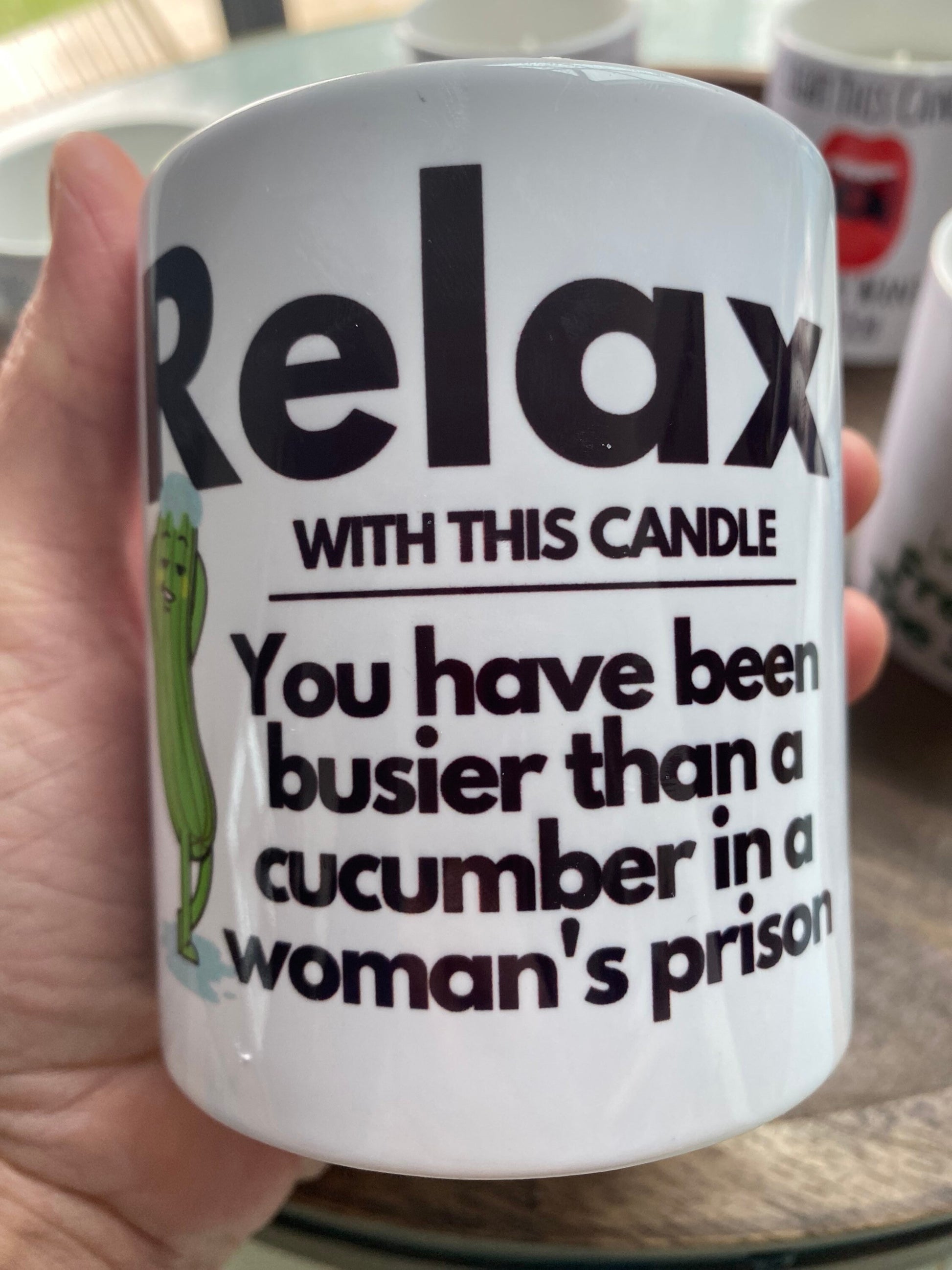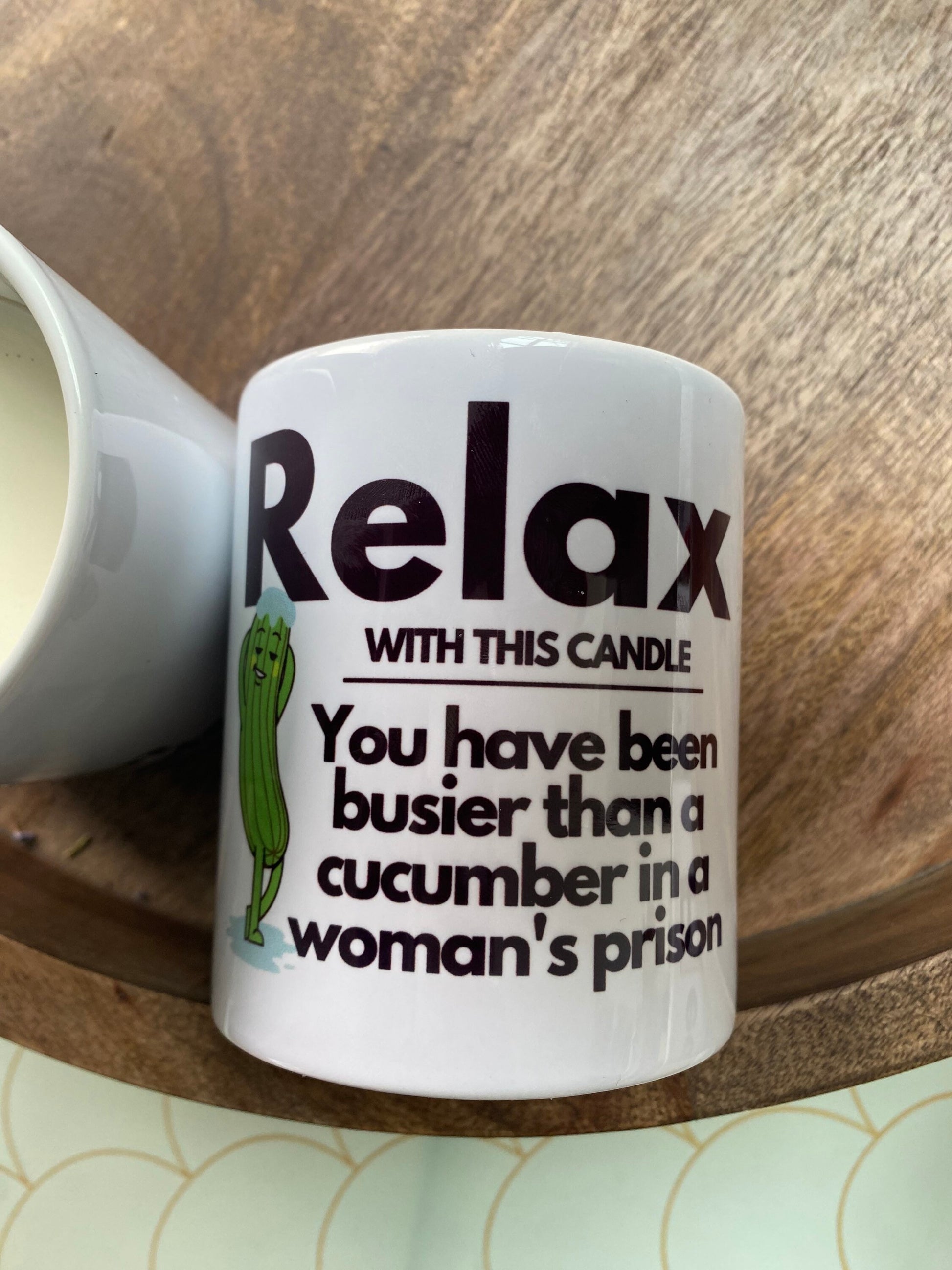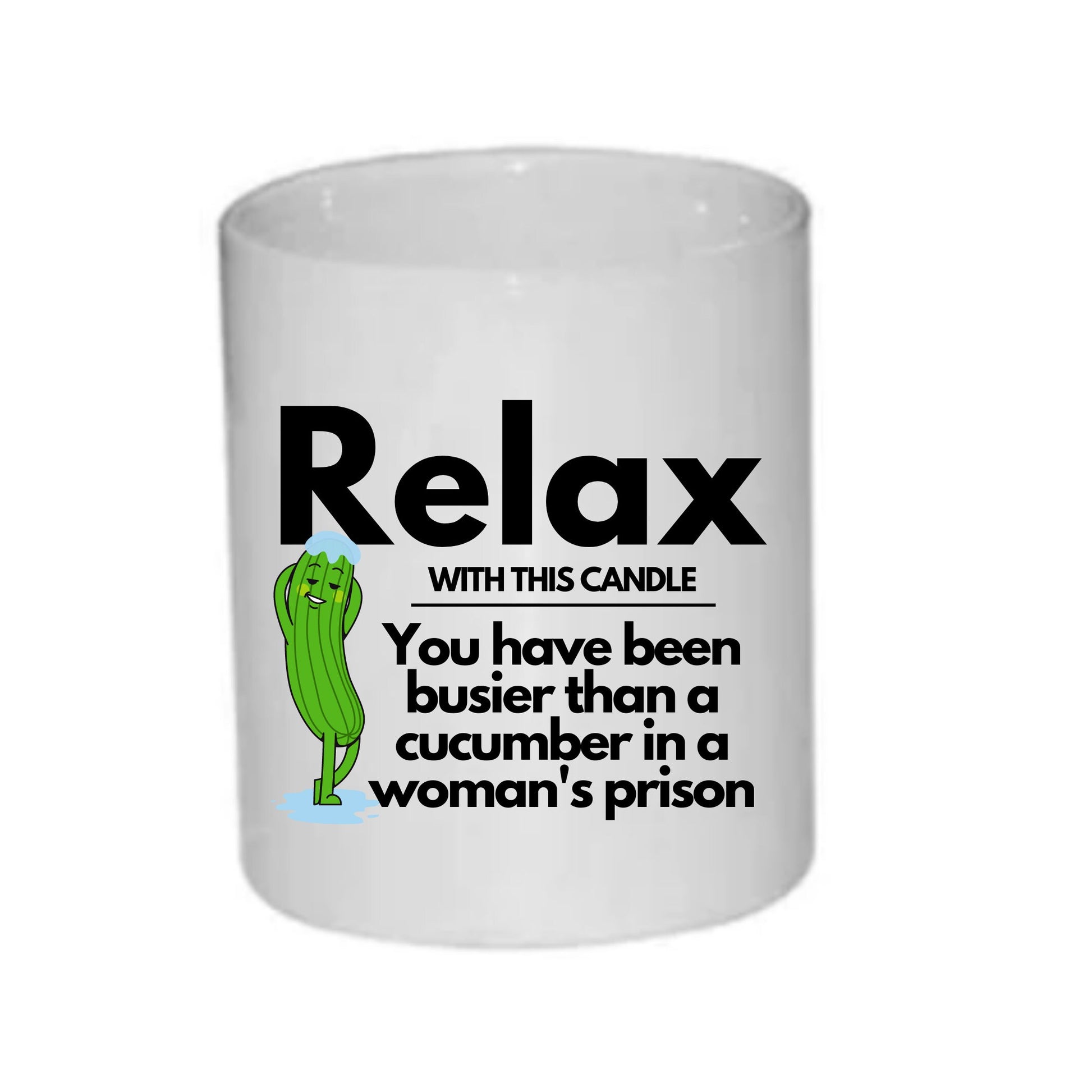 Relax you’ve been busier than a cucumber in a woman's prison candle