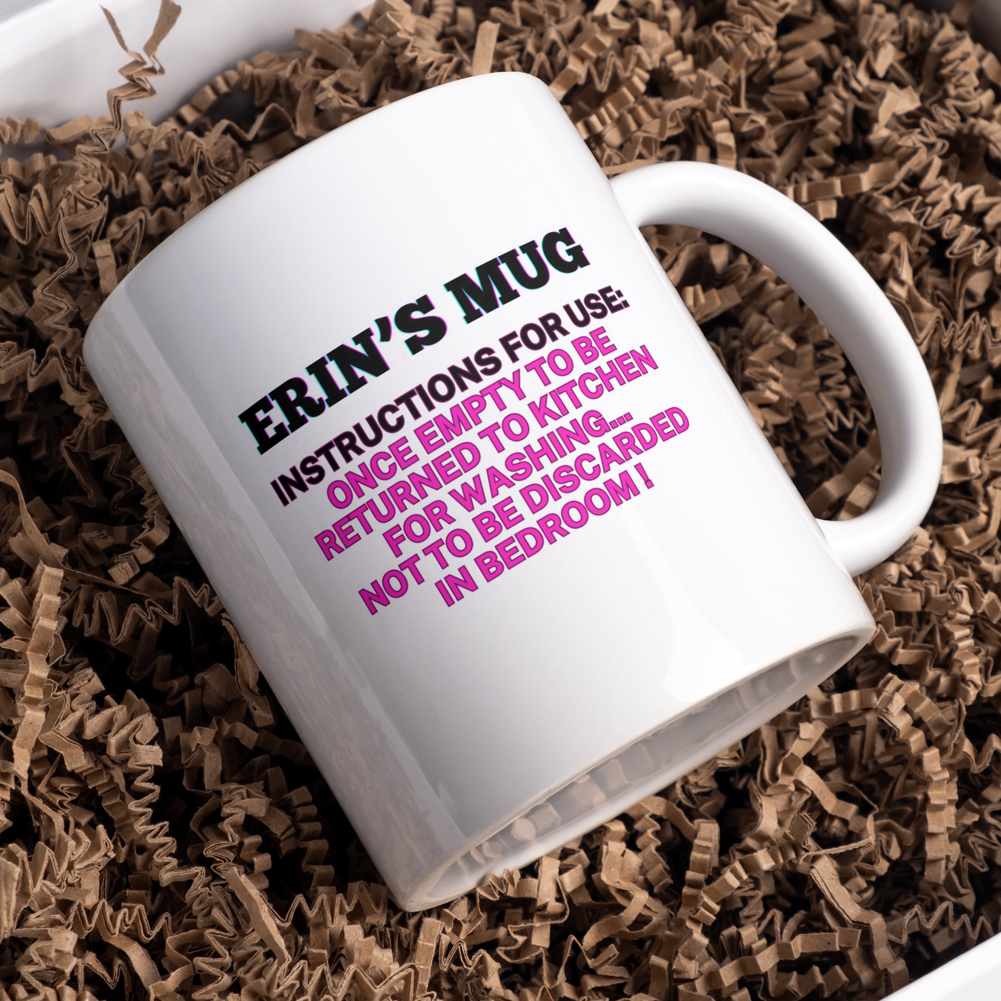 Teenager mug, personalised instructions for use, not to be discarded in bedroom, for the person who leaves the mug in their bedroom!