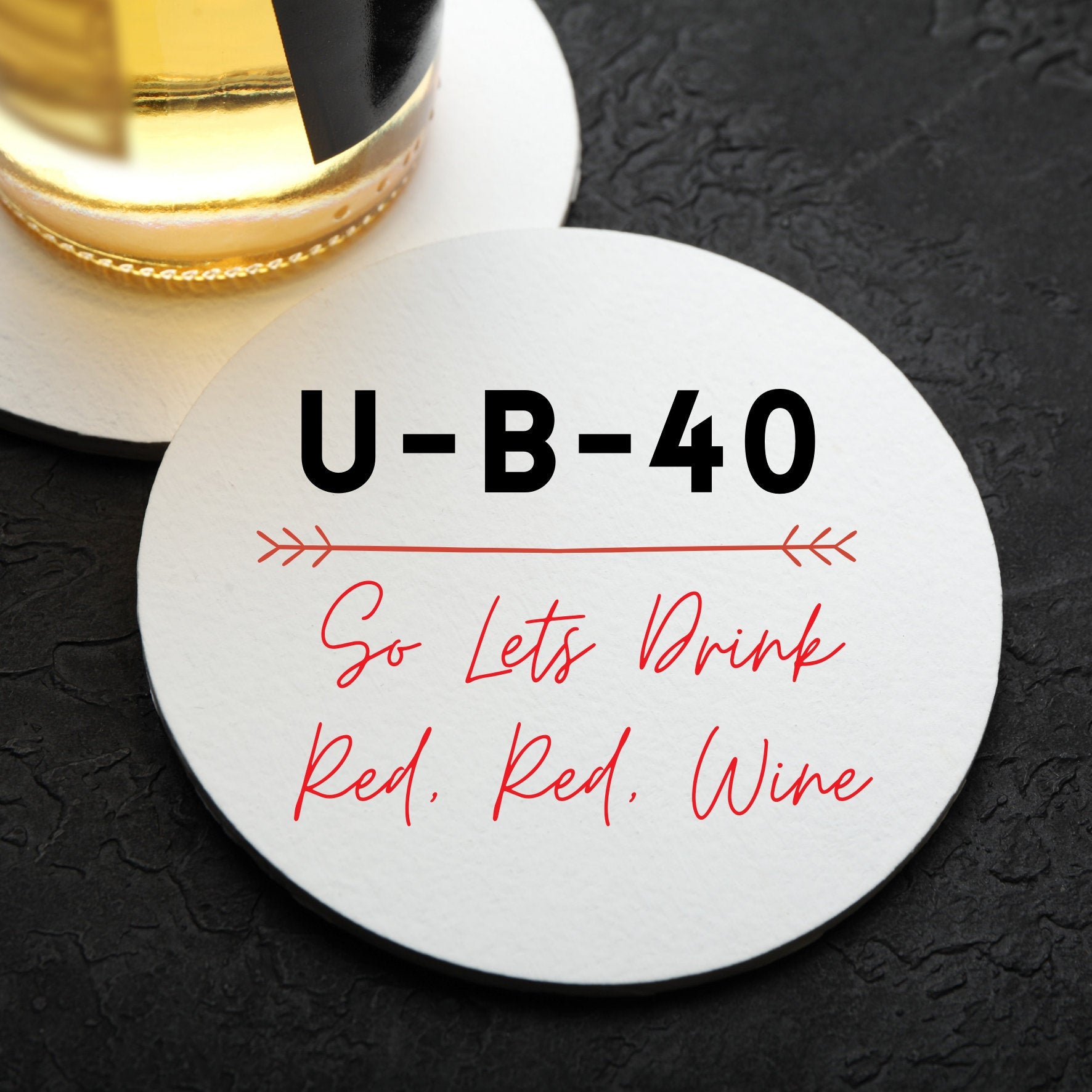 UB40 so lets drink red red wine wooden coaster